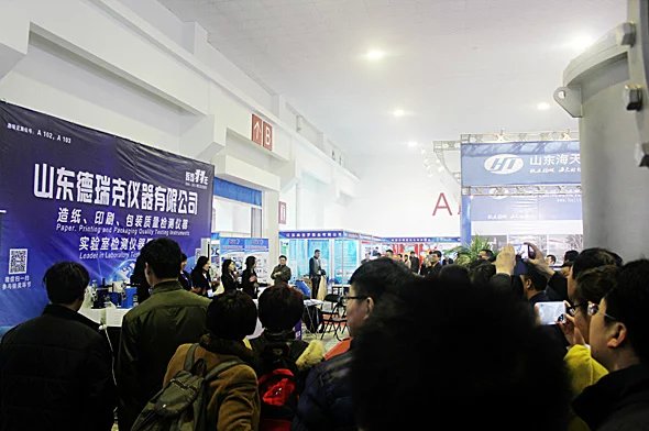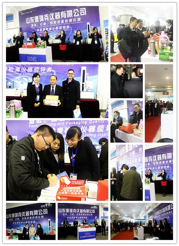 山東(國際)制漿造紙技術及裝備展覽會已成功舉辦十年,展會展出面積12000平方米,參展商約400余家,專業觀眾達15000余人,山東德瑞克攜2015新上市升級版產品亮相本次展會,其中DRK101A拉力試驗機采用進口直流伺服電機和滾珠絲桿構造性能更穩定, 中英文自由切換配合智能化 觸摸屏操作更便捷,且實時顯示曲線和數據。此外,平滑度儀,耐破度儀,耐折度儀,撕裂度儀,紙箱抗壓機等十余種新型檢測儀器也是山東德瑞克本次展會展出的得意之作,美觀,穩定,智能化,適中的價格,深得與會客戶的一致認可與好評。