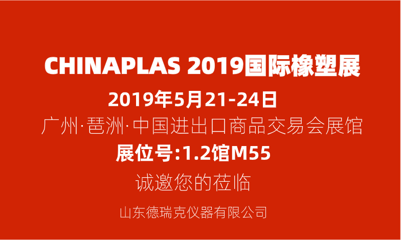 2019年CHINAPLAS國(guó)際橡塑展將于2019年5月21-24日在中國(guó)廣州.琶洲.中國(guó)進(jìn)出口商品交易會(huì)展館舉辦。該展會(huì)涉及的行業(yè)有化學(xué)、橡膠、塑料、原料等;涉及的主要產(chǎn)品有塑料機(jī)械及產(chǎn)品、塑膠加工機(jī)械等。山東德瑞克應(yīng)邀參加,屆時(shí)我們將攜2019新款橡膠塑料檢測(cè)儀器在1.2館M55展位恭候新老客戶(hù)的參觀指導(dǎo)!