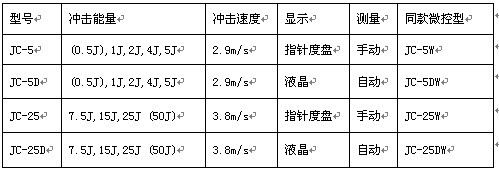 簡(jiǎn)支梁沖擊試驗(yàn)機(jī)型號(hào)/功能對(duì)比: